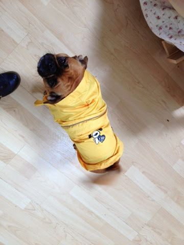 Ma bought me a cool rain coat as it's been very rainy out lately & my coat has a fur collar, so it's not very practical... Which is why I got my awesome new one with a hood!